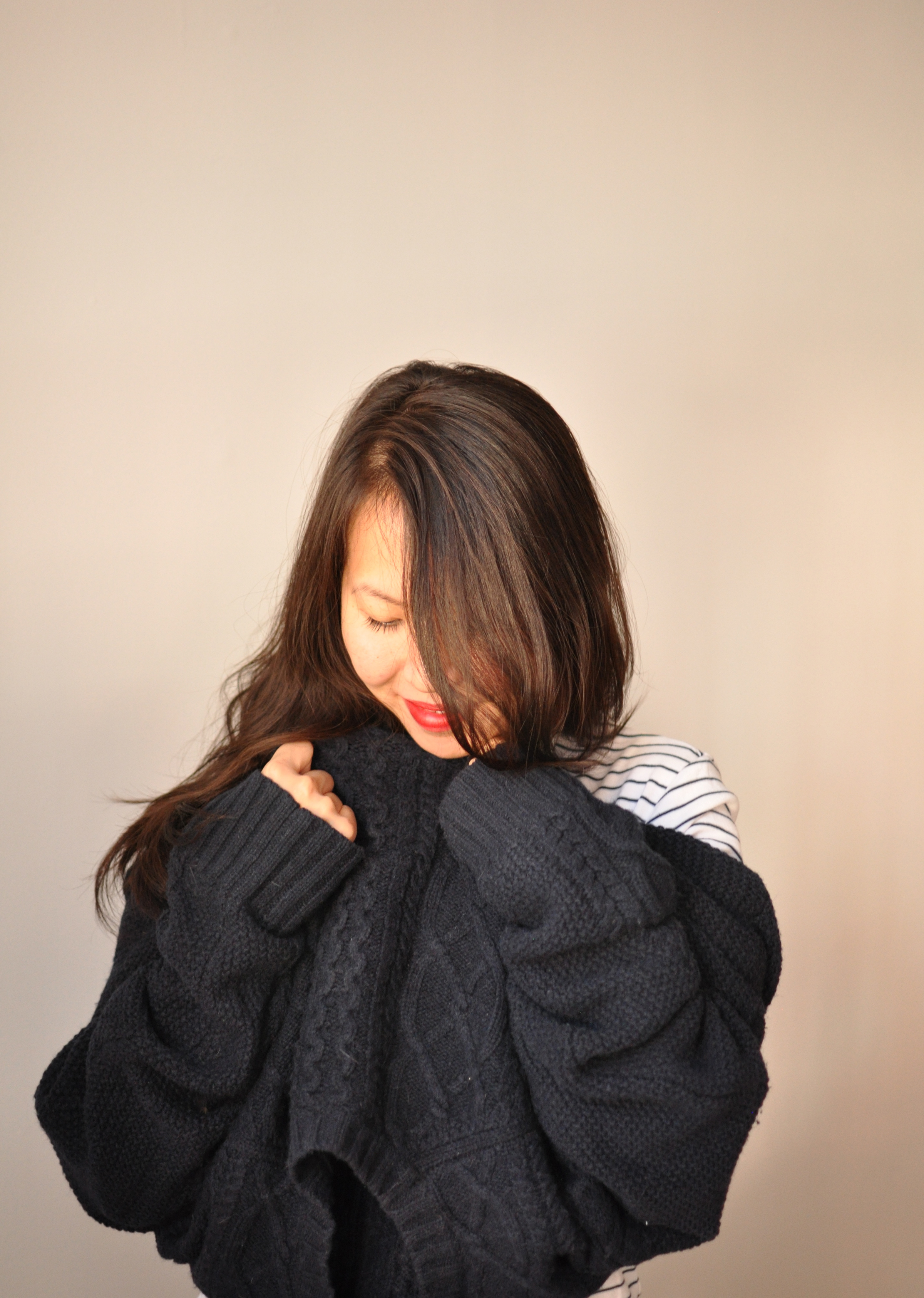 The only thing better than snuggling up into a warm sweater during the first weeks of autumn is when that warm sweater is borrowed from T’s closet. xo