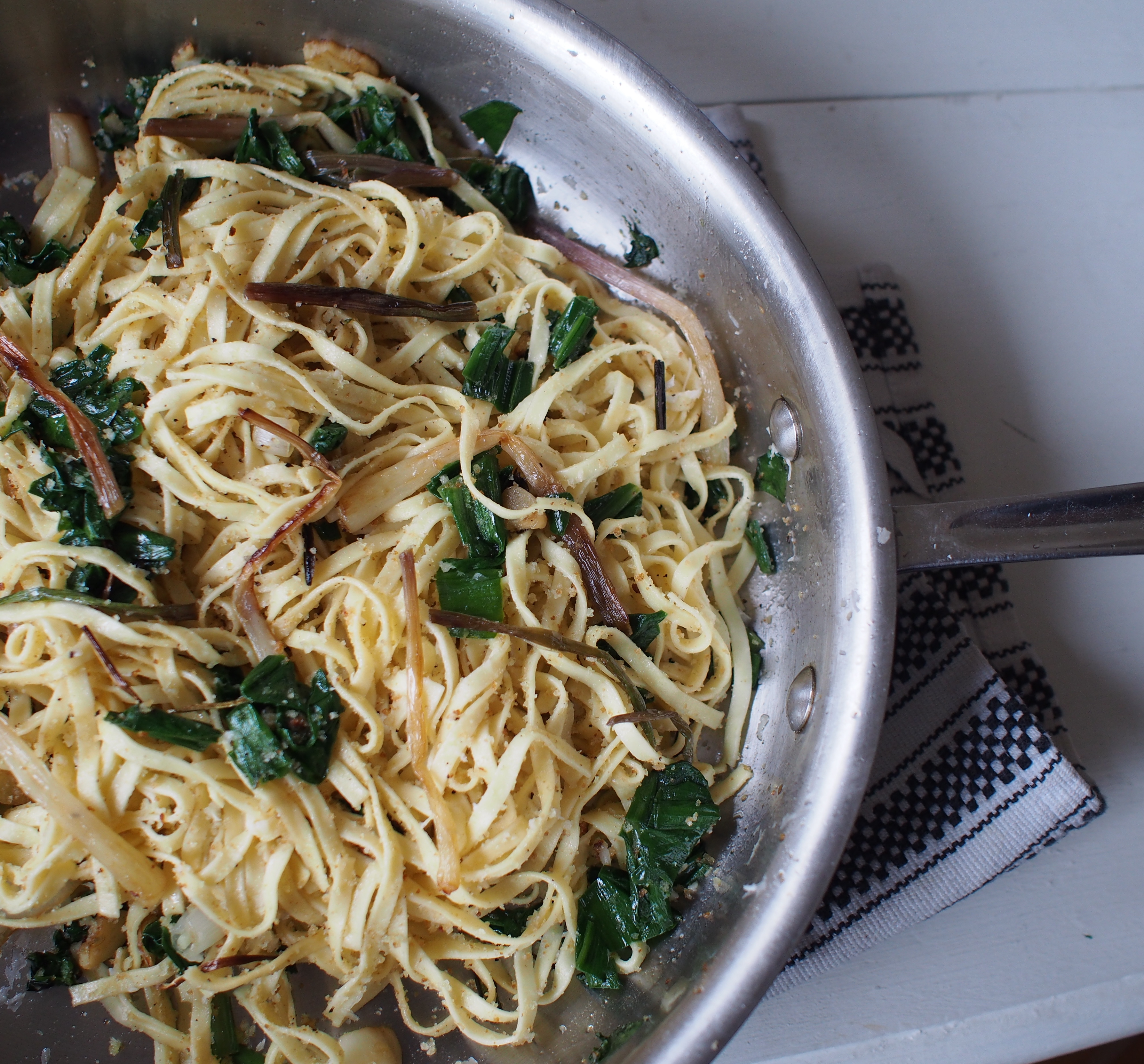 Linguine with sautéed ramps, toasted breadcrumbs, and pecorino romano